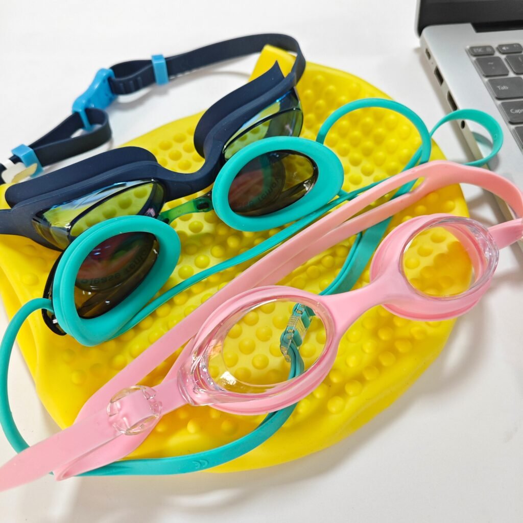 Usually, I would choose bright-colored swimming goggles to match my swimsuit